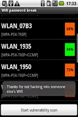 Ini adalah keamanan jaringan alat untuk menemukan kerentanan dalam jaringan Anda. Wifi sandi breaker akan memberitahu Anda yang Wifi dekatnya mudah untuk memecahkan password. Hijau berarti bahwa Wifi sangat mudah untuk menebak password, kuning dan oranye berarti dibutuhkan beberapa waktu untuk menghasilkan password dari Wifi, merah berarti hampir mustahil untuk hack ke dalam WiFi.